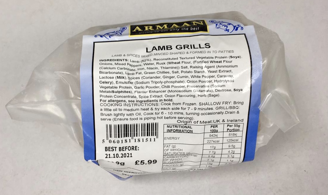 Lamb & spices mixed, minced, shaped & formed into patties